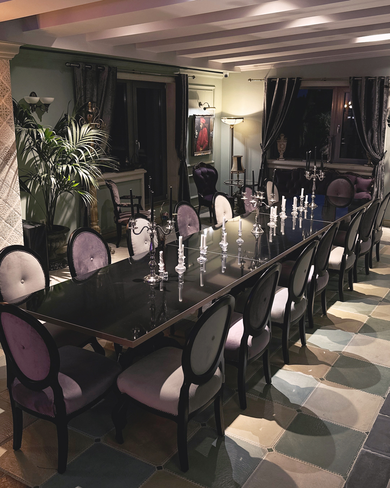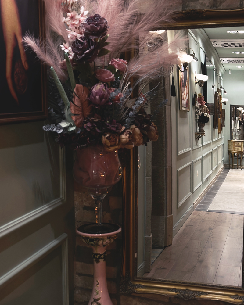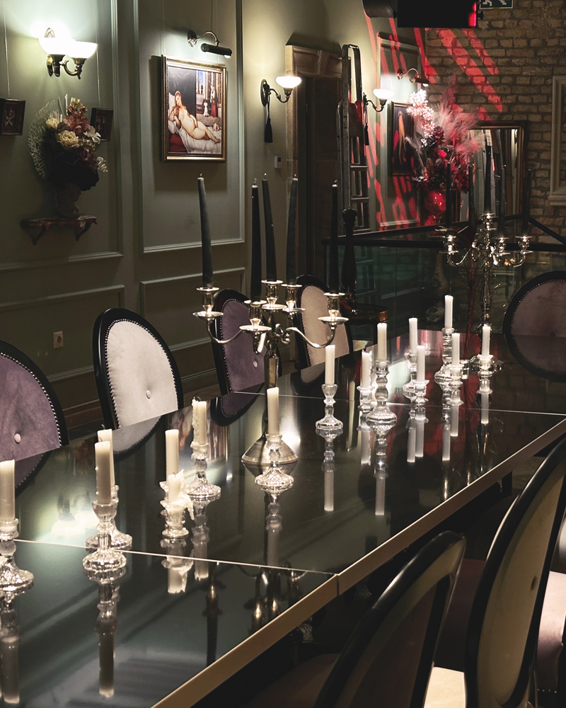 A különleges design Firenzét idézi meg, kifinomult részletekkel és arisztokratikus eleganciával. A gazdagon díszített belső tér, az elegáns bútorok és a fények harmóniája egyedi hangulatot teremt, amely méltó hátteret biztosít nívós eseményekhez. A terem maximálisan 70 fő befogadására ideális, de a rugalmas berendezésnek köszönhetően a meghitt, kétfős vacsorától kezdve akár 100 fős állófogadásig minden eseményt méltó környezetben valósítunk meg.